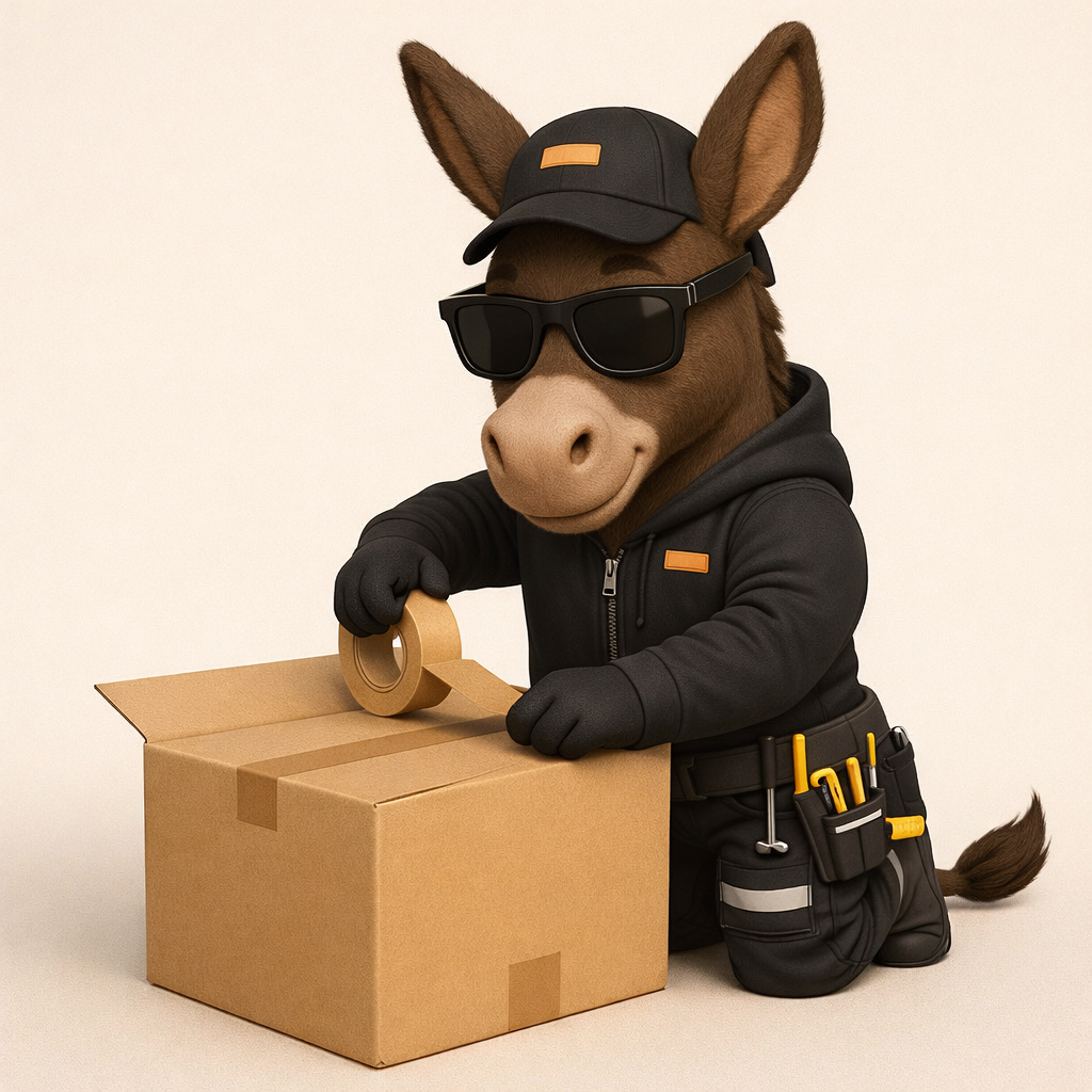 Mit unserem Pack- & Verpackungsservice übernehmen die Packesel den kompletten Part, der am meisten nervt: sicher einpacken, systematisch sortieren, sauber beschriften.
